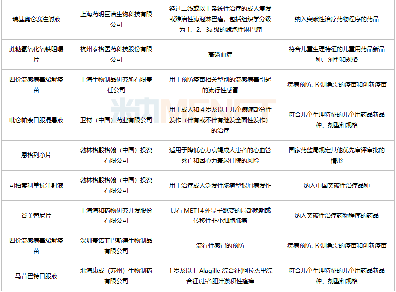 今年以来被纳入优先审评品种