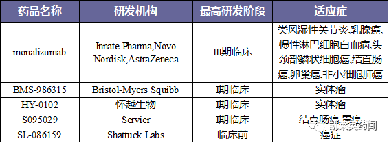 据不完全统计,目前在研的NKG2A药物5个,其中4家的药物已进入临床阶段。