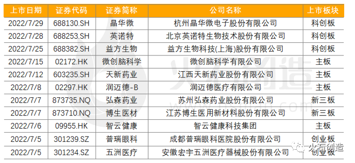 表5:2022年7月生物医药上市企业名单