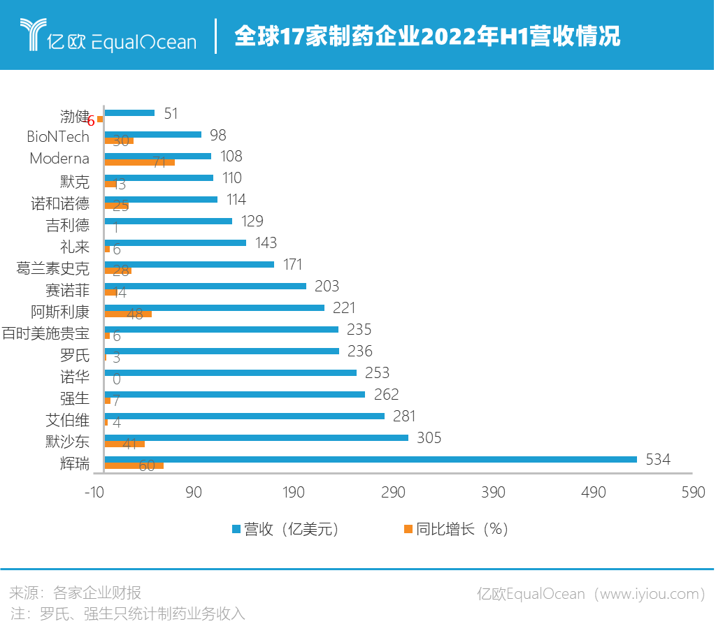 因为新冠业务和其他药品的销售变化,同比2021年上半年,全球制药巨头的营收榜单名次也再度有所更迭。