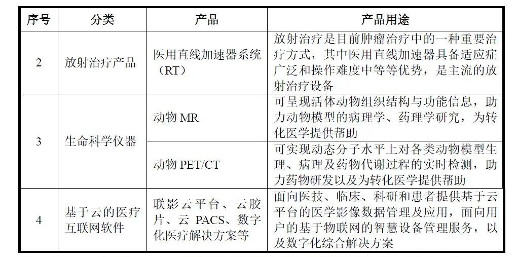 根据联影医疗招股书介绍,自设立以来,该公司持续进行高强度研发投入,致力于攻克医学影像设备、放射治疗产品等大型医疗装备领域的核心技术。截至报告期末,公司累计推出80余款产品,包括磁共振成像系统、X射线计算机断层扫描系统、X射线成像系统、分子影像系统(PET/CT、PET/MR)、医用直线加速器系统以及生命科学仪器。在数字化诊疗领域,公司基于联影云系统架构提供联影医疗云服务,实现设备与应用云端协同及医疗资源共享。