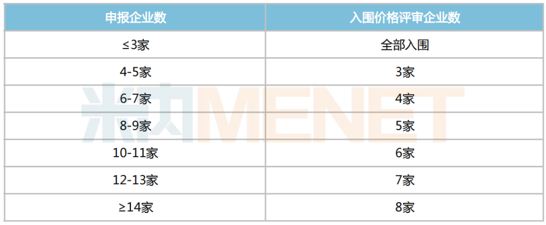 入围价格评审企业情况