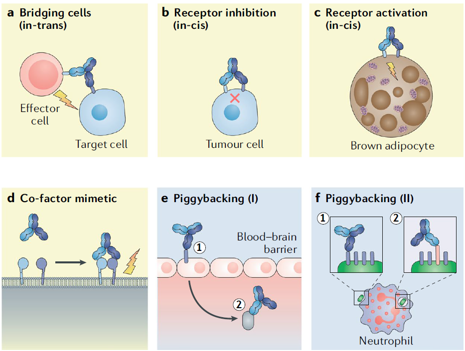 ▲双特异性抗体的潜在作用机制(图片来源:参考资料[4])