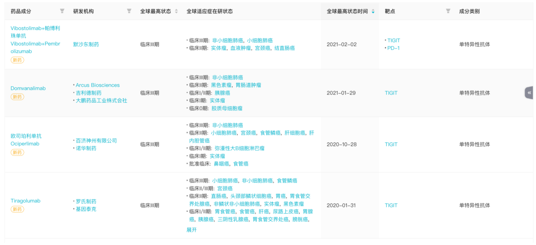 全球处于 III 期研发阶段的 TIGIT 抗体药