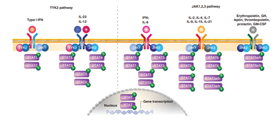 ▲TYK2信号通路和JAK1/2/3信号通路示意图(图片来源:参考资料[1])