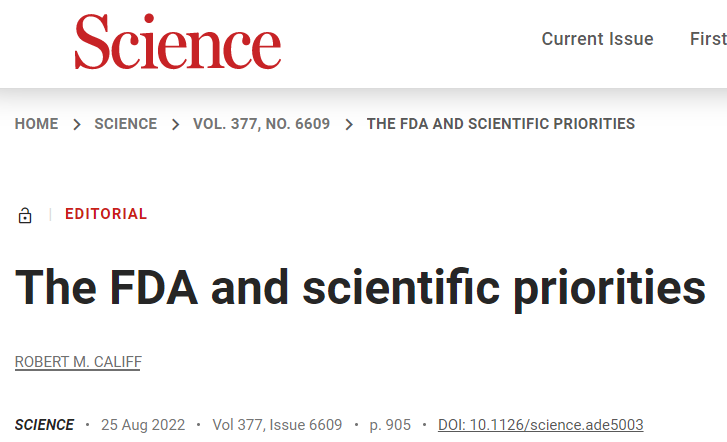 日前,美国FDA局长Robert M. Califf博士在《科学》杂志上以“The FDA and Scientific Priority”为题发表评论文章,阐述了他认为FDA和生物医疗产业应该注重开发的疾病领域,以及促进科学转化和疗法开发的策略。