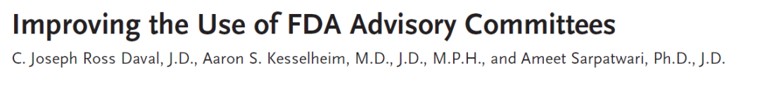 日前,哈佛大学监管、医疗和法律项目(PORTAL)的三位学者在《新英格兰医学杂志》上发表文章,表示在改进FDA咨询委员会的使用方面,FDA可以采纳以下三点举措:
