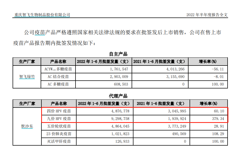 数据显示,上半年智飞生物所代理的默沙东四价、九价疫苗,批签发量分别为487.67万支、929.87万支。