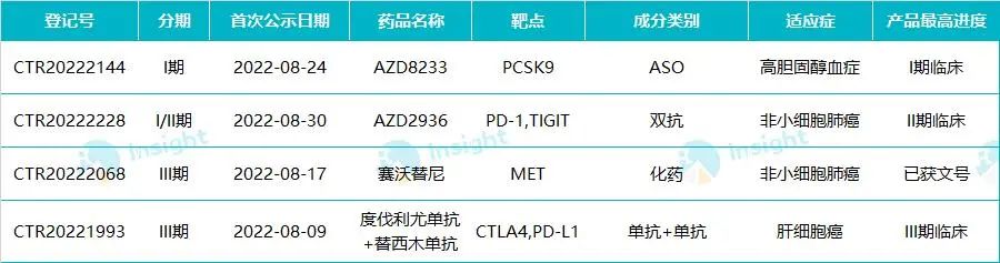 阿斯利康 8 月新药 CDE 临床试验登记一览