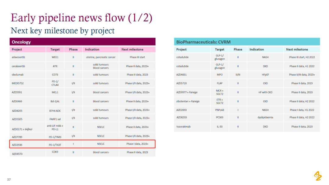 AZD2936 目前仍处于 I/II 期临床试验当中,全球和国内的进度保持一致。阿斯利康预计将在 2023 年度拿到其 I 期临床数据。