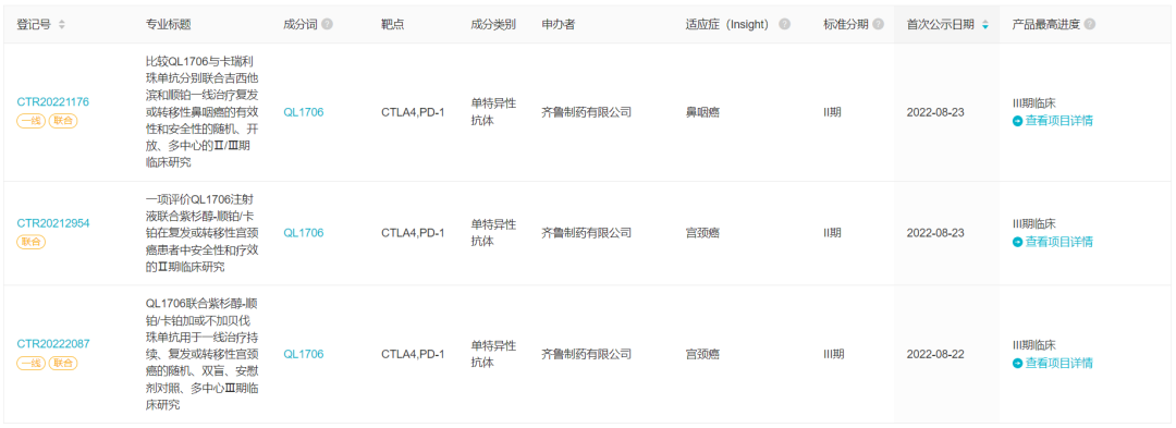 8 月 QL1706 新临床试验登记
