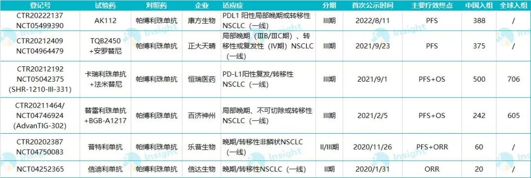 8 月 26 日,据 Insight 数据库显示,康方生物登记公示了一项随机对照的多中心 III 期临床研究(登记号:CTR20222137),旨在评估 AK112 对比 pemprolizumab 一线治疗 PDL1 阳性局部晚期或转移性非小细胞肺癌(NSCLC)患者的疗效和安全性。