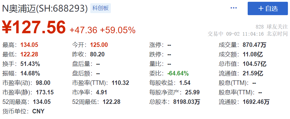 2022年9月2日,奥浦迈正式在科创板挂牌上市,截至目前股价涨60%,市值达到104亿元人民币。