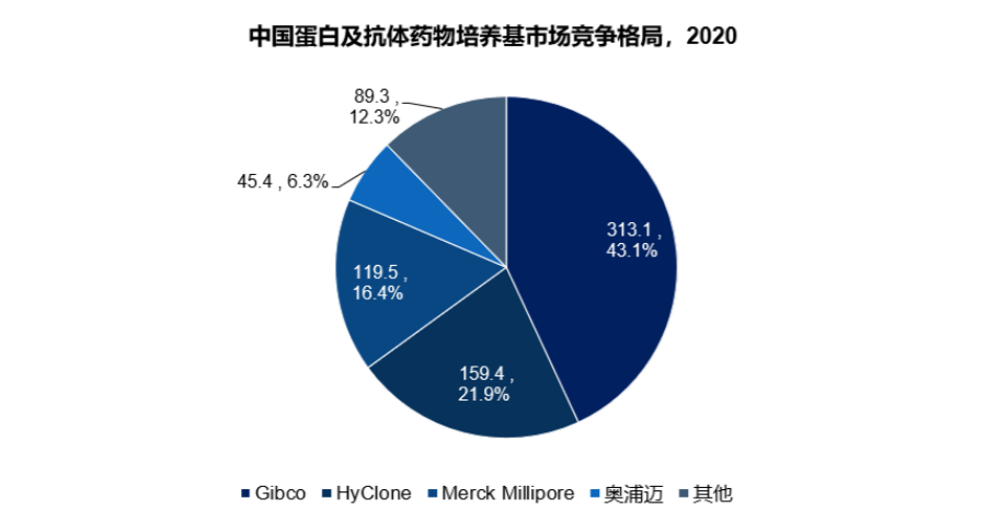 赛默飞、丹纳赫、默克占据国内培养基市场的三分之二,如果具体到抗体和蛋白药物领域,三家外企的份额更是达到了81.4%,国产化替代空间更加巨大。