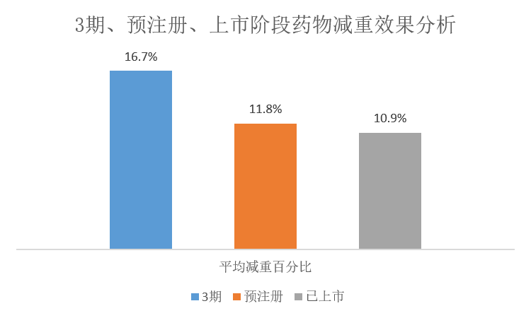从已上市、预注册到3期临床阶段,药物减重效果稳步提升,不断突破以往5%-10%的减重瓶颈。