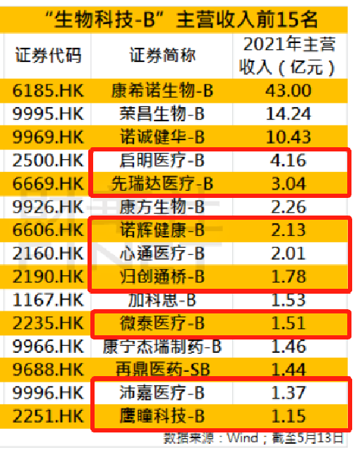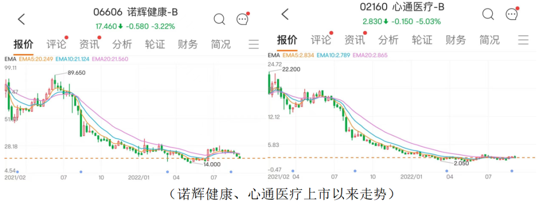 截止2022年6月,鹰瞳科技-B、堃博医疗-B账上现金及等价物分别为15.7亿、13.77亿人民币,两者市值已经显著低于现金。