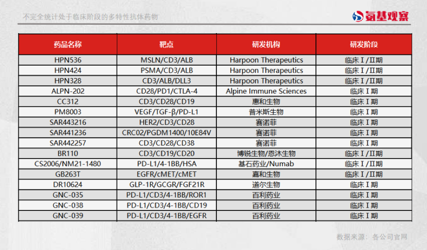 正如上文所说,仅在肿瘤治疗领域,双抗已彻底爆发,三抗、四抗等靶向目标更多的抗体类药物研发同样如火如荼。当前,全球已有超30款三特异性抗体候选分子在研。