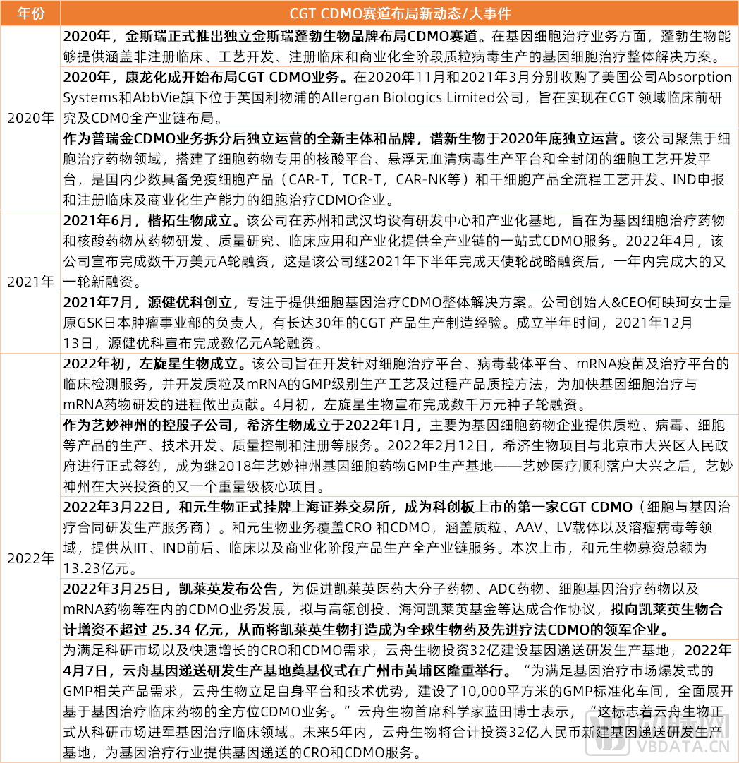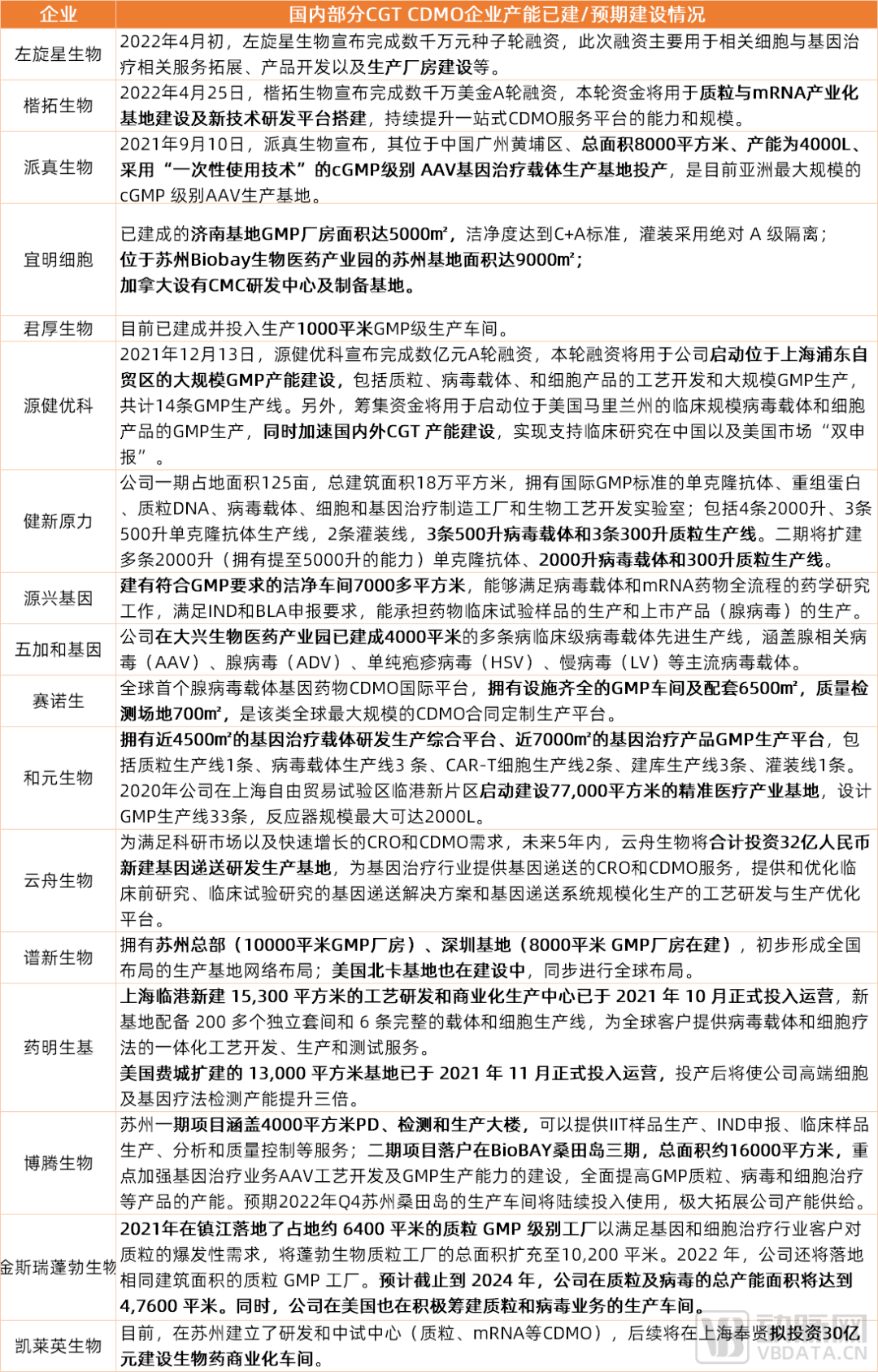 在广阔市场前景的吸引下,越来越多的新玩家涌入CGT CDMO赛道,2022年尤甚。