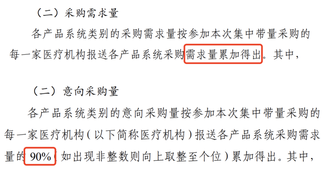 ▲两次骨科国采需求量对比,前为脊柱国采公告,没有说明意向采购量;后为关节国采公告