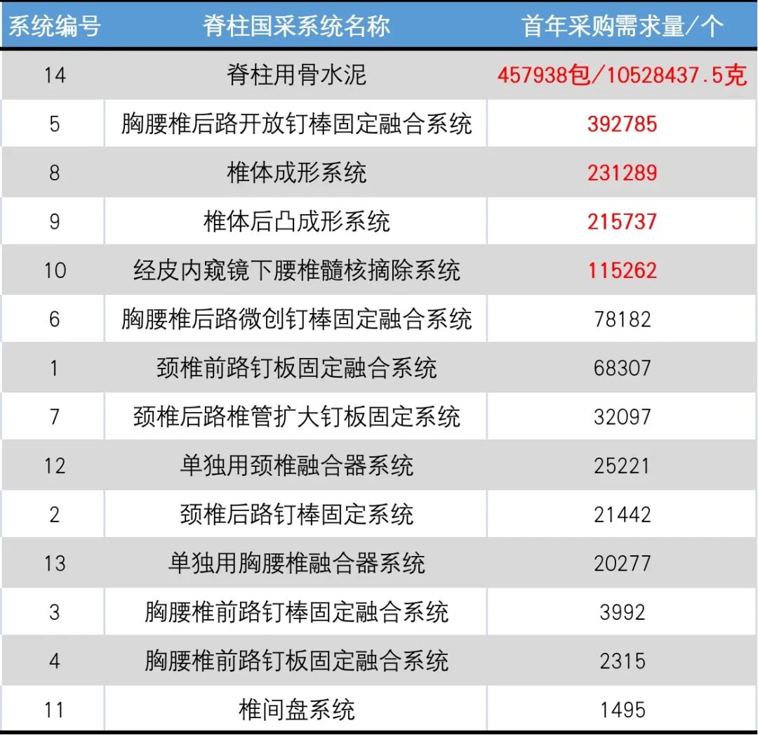 ▲脊柱国采产品需求量排名