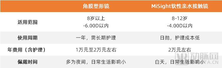尽管当前并没有直接将MiSight与角膜塑形镜直接比较的研究,但同样作为延缓近视的“处方类”隐形眼镜,二者难免会有竞争点。