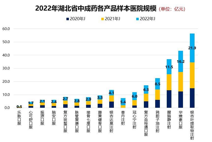 表1:2022年湖北中成药带量采各产品样本医院规模