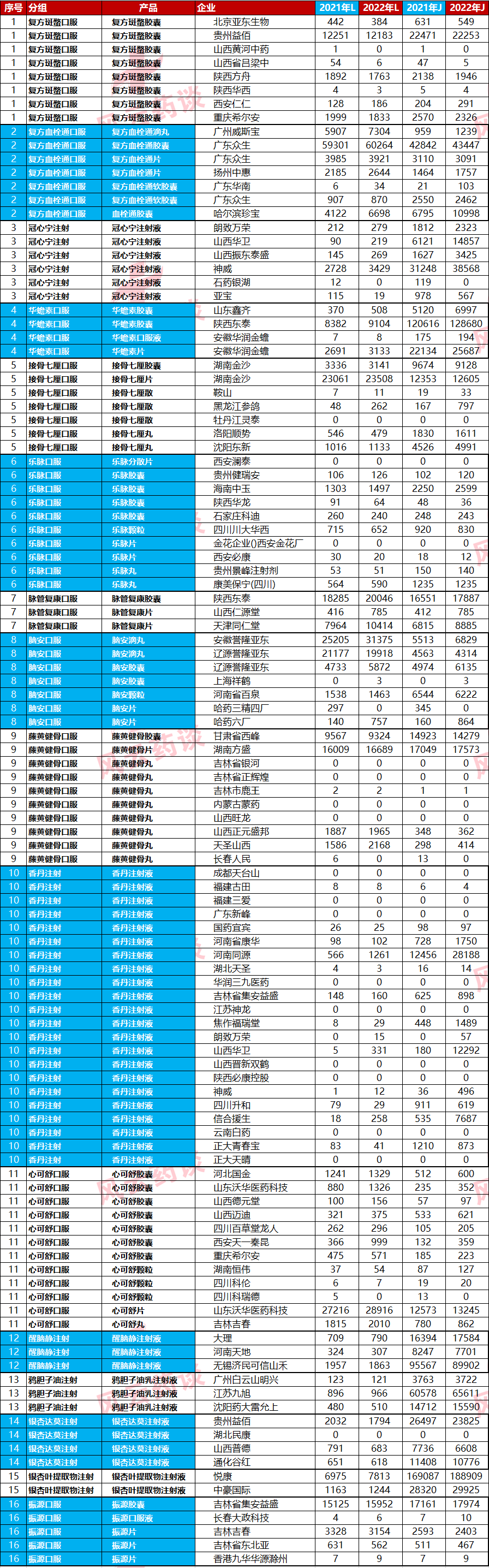 2、各组厂家不激烈:本次各产品组的竞争性和2021年的第一批相比非常之温和,去年的银杏叶组A组+B组有将近60多家。