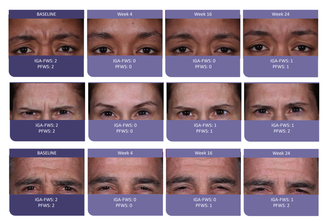此次批准是基于一项代号为SAKURA的III期临床试验数据,该研究共纳入2700多例患者。结果显示,接受DaxibotulinumtoxinA注射后,最快1天即可观察到皱纹改善结果,一般在两天内看到;在第4周时,74%的受试者眉间线得到改善;98%的受试者眉间纹严重程度得到改善;中位持续时间长达6个月,一些患者甚至在9个月时仍然维持改善效果。