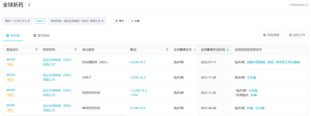 信达生物 CLDN18.2 管线