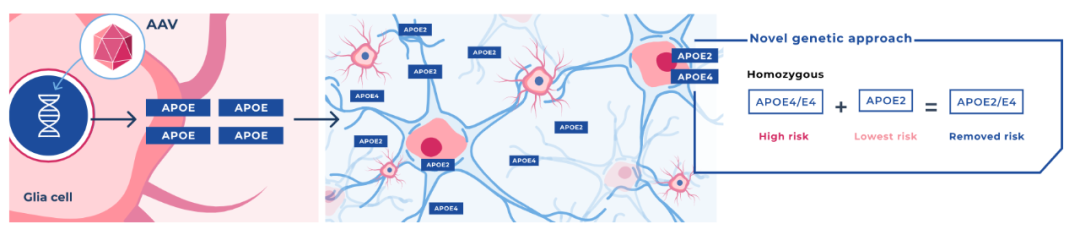 LX1001是一种基于腺相关病毒的在研基因疗法,旨在将表达保护性载脂蛋白E2(APOE2)的转基因递送到携带两个APOE4等位基因的阿尔茨海默病患者的中枢神经系统(CNS),以阻止或减缓疾病进展。