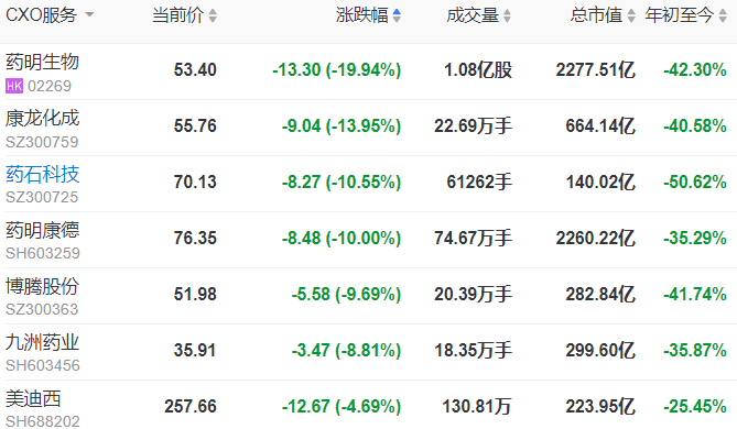 受美国准备签署扩大美国生物制造业行政法令消息的影响,A股市场的CXO概念股9月13日出现大幅下跌。有声音表示,由于国内相对薄弱的创新药产业,短期无法为庞大的CXO行业带来足够的下游订单。换句话说,无论是biotech的出海,亦或是CXO企业的出海,短期内变得异常艰难。