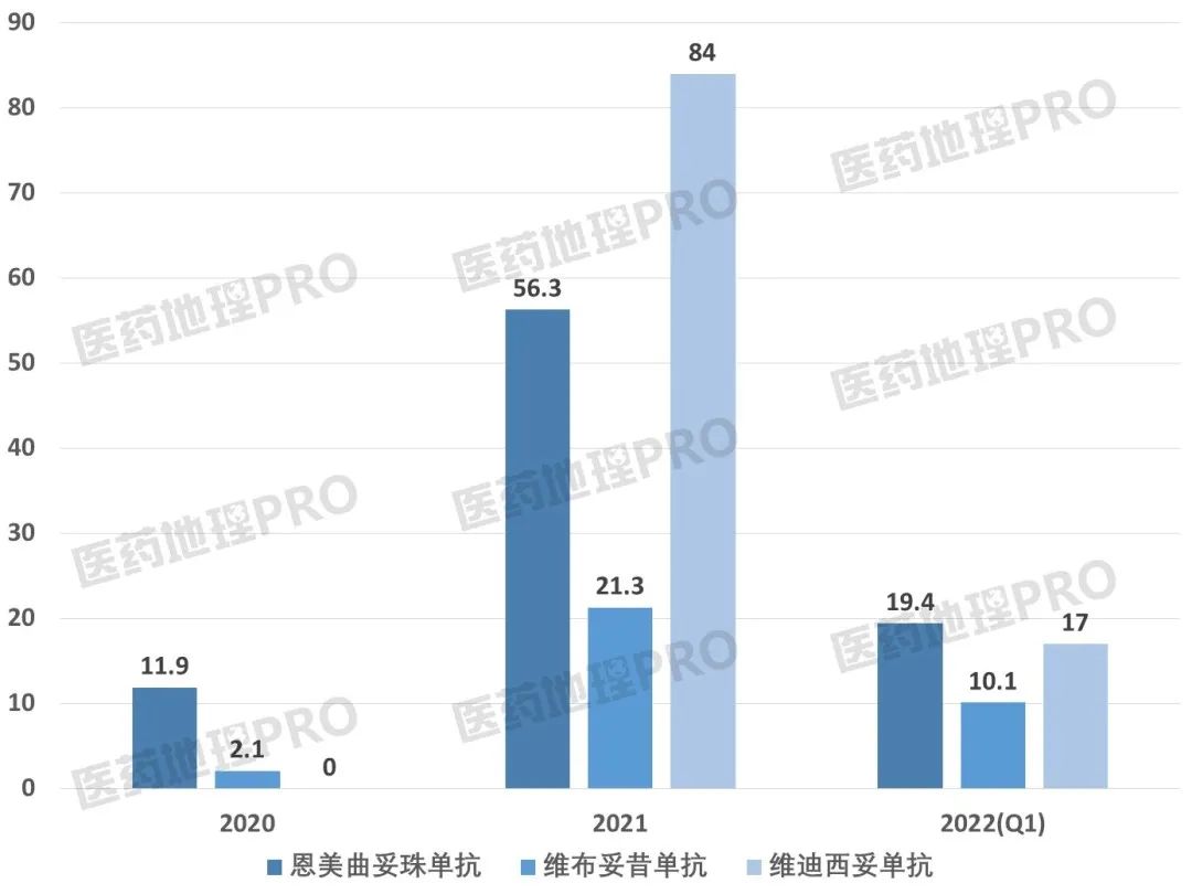 今年进入初审名单的ADC药物包括首次进入初审的罗氏恩美曲妥珠单抗、武田维布妥昔单抗和去年已经谈判成功的荣昌生物的维迪西妥单抗。从PDB药品综合数据库整体医药市场数据中可以看出,相较另外两款ADC,去年成功进入医保对维迪西妥单抗有着重要意义。