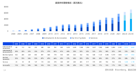 “直觉外科在耗材和服务的收入占比上逐渐提升,这符合公司的整体发展路径,从前期的市场教育、用户体验,到逐渐向不同专科拓展,再到用户黏性进一步提升。”陆嵘超说道。