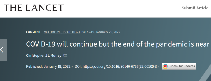 那么所谓的终点到底是什么?我们或许可以借鉴《柳叶刀》(The Lancent)杂志今年年初的一篇评论,去理解“终点”的含义——“COVID-19 will continue but the end of the pandemic is near”。(新冠肺炎还会继续存在,但新冠大流行即将结束)