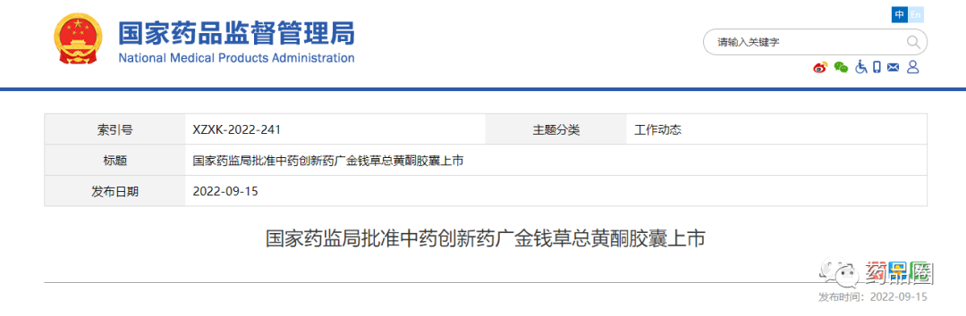近日,国家药品监督管理局批准了1.2类中药创新药广金钱草总黄酮胶囊的上市注册申请。该药的主要成份是从广金钱草中提取得到的总黄酮类成份,药品上市许可持有人为武汉光谷人福生物医药有限公司。