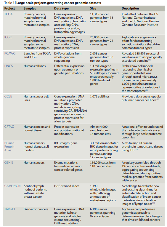 大数据并非癌症领域独有,在许多科学学科中发挥着重要作用。然而,癌症领域的数据集在几个关键方面不同于其他领域。首先,癌症数据集的大小通常明显更小。其次,癌症研究数据通常是异构的,可能包含许多测量细胞系统和生物过程不同方面的维度。由于每种模式的数据量相对有限,而且它们之间存在高度的异质性,因此需要开发创新的计算方法来整合不同维度和队列的数据。