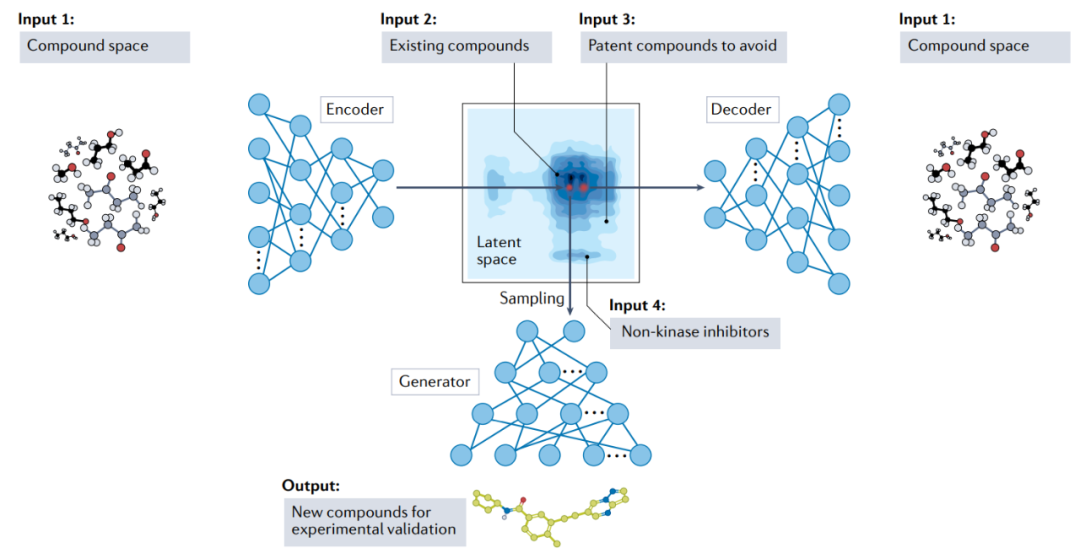 大数据已被用于帮助现有药物的再利用,以治疗新疾病和设计协同组合。此外,最近的研究结合药理学数据和人工智能已用于设计新药。基于现有DDR1抑制剂和化合物文库的信息,使用深度生成模型设计抑制受体酪氨酸激酶DDR1的新分子,主要候选物在小鼠中显示出有利的药代动力学特征。