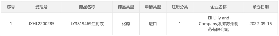 9 月 15 日,据 CDE 官网显示,礼来心脏代谢新药 LY3819469 注射液在国内递交的临床试验申请获受理(受理号:JXHL2200285)。