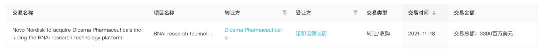 但诺和诺德并不止步于此,于 2021 年 12 月斥资 33 亿美元重金收购了 Dicerna,以进一步加速 RNAi 药物研发以及扩展 RNAi 技术的应用,成为当年医药领域溢价率最高的收购案之一。