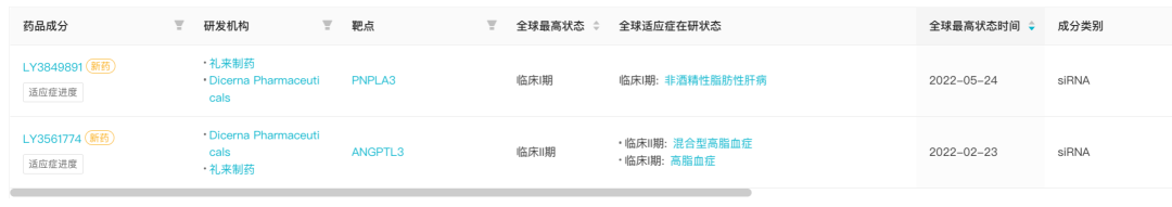 LY3819469 是两家公司合作开发的第二款进入临床阶段产品,此前于 2020 年 11 月,其合作的另一款 RNAi 疗法候选药物 LY3561774 已获 FDA 批准临床,当前正在开展正对高脂血症的 II 期临床研究(登记号:NCT05256654),暂未在国内报临床。