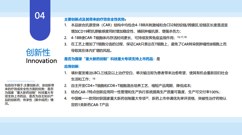 药明巨诺 CAR-T 细胞疗法瑞基奥仑赛,康宁杰瑞和复宏汉霖的 PD-(L)1 单抗,百济神州司妥昔单抗、翰森制药的首个生物新药伊奈利珠单抗,以及康方生物的 PD-1/CTLA-4 双抗卡度尼利单抗。