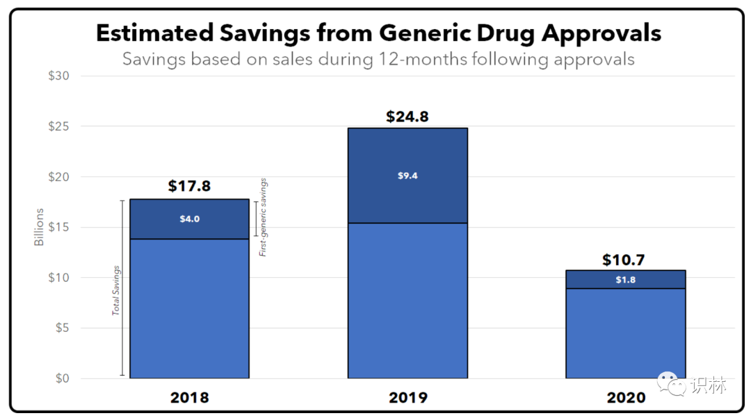 根据美国 FDA 于 上周发布的一份题为“2018、2019 和 2020 年度估计新仿制药批准带来的节约”的报告,仿制药在 2020 年为患者节约了 107 亿美元,相比前两年有所降低,2018 年这一数字为 178 亿美元,2019 年为 248 亿美元。