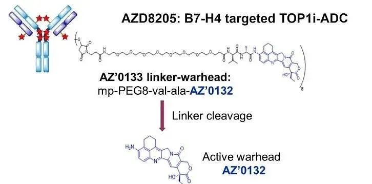 而阿斯利康在除了依靠第一三共提供的ADC药物外,也开始寻求内部自主研发,并Follow第一三共的技术路线。据管线显示,阿斯利康自主研发了一款靶向B7H4的ADC药物,其中payload就是采用了与第一三共类似的拓扑异构酶I抑制剂。去年10月,阿斯利康已经在ClinicalTrails.gov上登记了一项I/II期临床,日前,AZD8205已在国内获批临床。