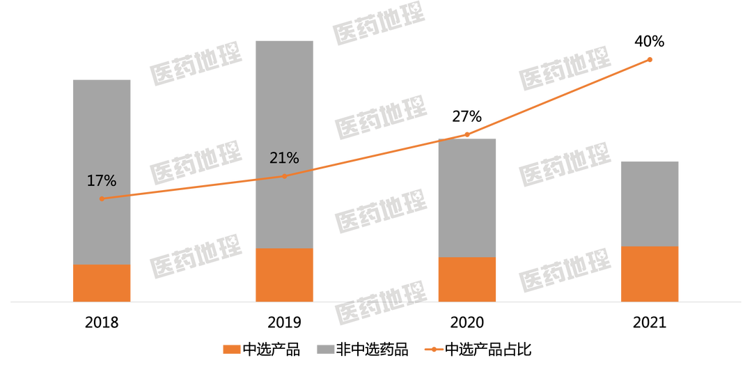 图1:中选产品市场规模及占比(通剂规)变化