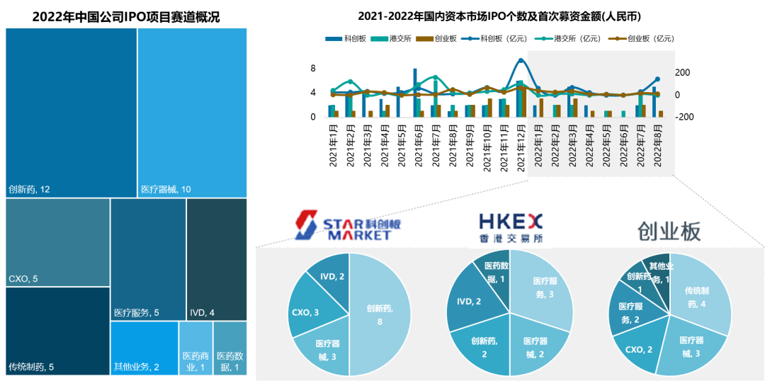 受国际形势影响,更多的投资者偏向未来在境内上市路径的投资标的。随着十四五规划的出台,国家政策将进一步引导生物医药企业在境内上市,赴港潮和赴美潮已成过去。科创板成为众多优质生物医药企业的上市首选。上交所发布新政允许医疗器械企业按照第五套标准在科创板上市。