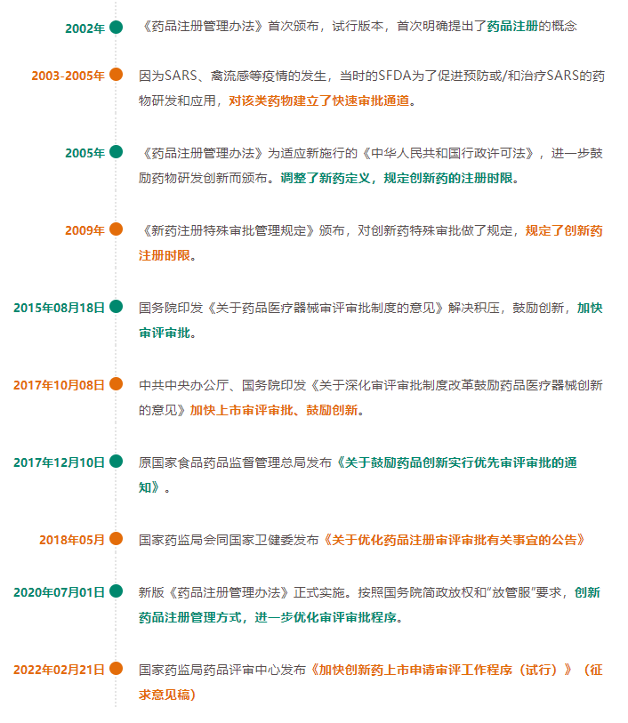 我们一起回顾一下,中国新药加快审评审批政策的改革变迁: