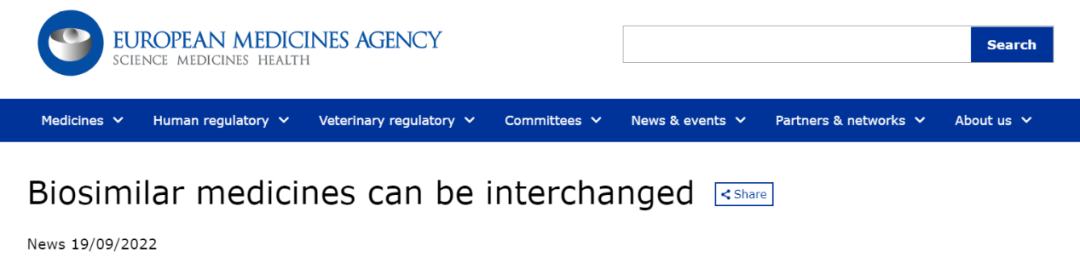 出处:https://www.ema.europa.eu/en/news/biosimilar-medicines-can-be-interchanged