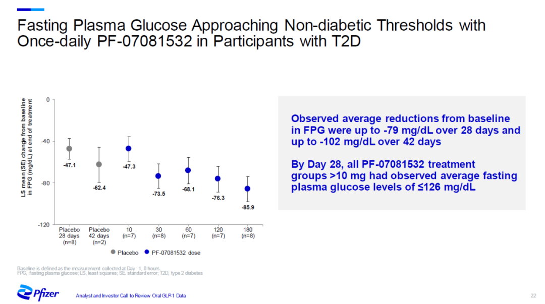 ▲PF-07081532显著降低2型糖尿病患者的空腹血糖水平(图片来源:辉瑞官网)