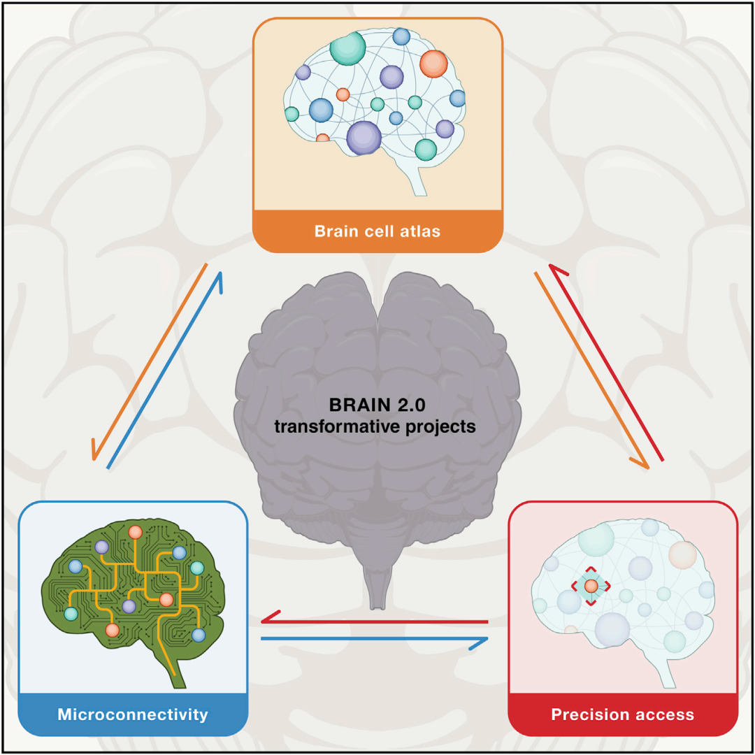 早在年初,John Ngai 以“BRAIN 2.0: Transforming neuroscience”(BRAIN 2.0:改变神经科学)为题在 Cell 上发表了一篇评论文章,介绍了“脑计划 2.0”阶段即将开展的三大研究课题:绘制综合的人脑全细胞图谱、构建哺乳动物大脑微连接性图谱,以及研发精准靶向脑内各类细胞的工具和技术。