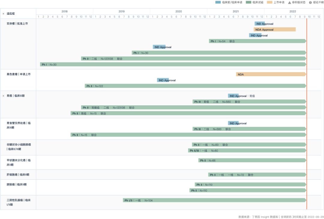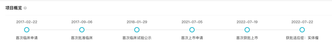 据 Insight 数据库显示,普特利单抗于 2017 年 9 月在国内首次获批临床,2018 年 1 月首次公示临床试验,并于 2021 年 7 月首次申报上市,用于二线及以上治疗晚期黑色素瘤,并于今日获批上市。